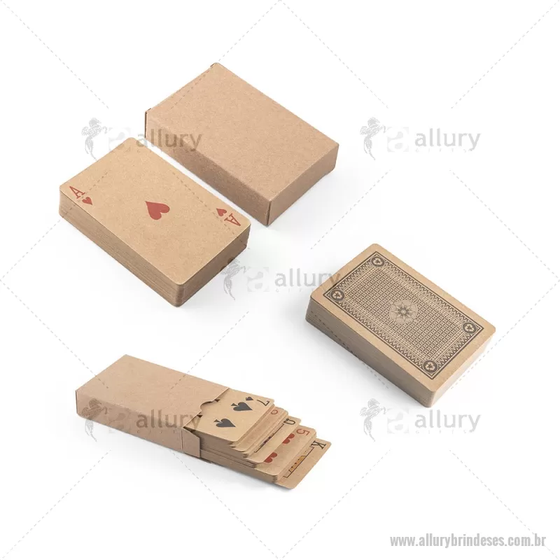 Baralho de 54 cartas clássicas em papel kraft Baralho com 54 cartas clássicas em papel kraft, proveniente de gestão florestal sustentável, ideal para compartilhar bons momentos com amigos e família. Fornecidas em caixa presente de papel kraft reciclado. A cor e o resultado da impressão nos materiais naturais pode variar entre produtos. medidas: 60 x 90 x 20 mm Peso do Produto (g.): 57 - - ALLESJOG011