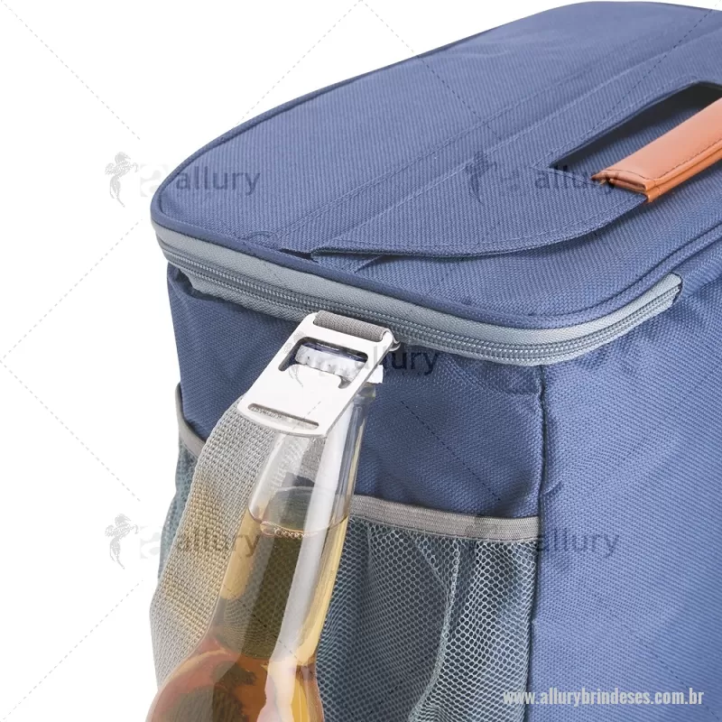 Bolsa térmica de 11 litros feita em Oxford impermeável, com detalhes em couro sintético e revestimento interno em PEVA para melhor conservação da temperatura. Possui bolso frontal aberto, dois bolsos laterais em tela, alça de mão, alça transversal ajustável e abridor de garrafas em inox acoplado na lateral. Prática e ideal para uso diário. - - ALLESBT098