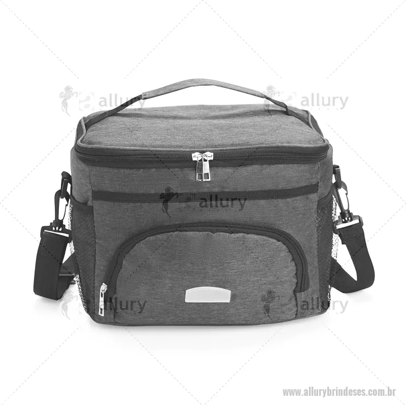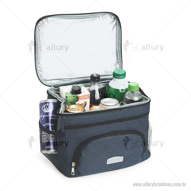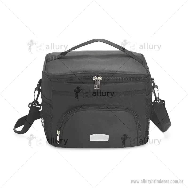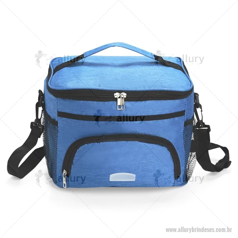 Bolsa térmica de 10 litros feita em poliéster resistente à água, com revestimento interno em PVC laminado. Conta com bolso frontal com zíper, dois bolsos laterais em tela, alça superior fixa e alça transversal removível. Prática e ideal para levar alimentos e bebidas no dia a dia. - - ALLESBT103