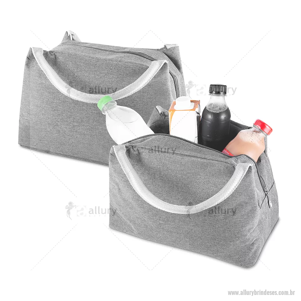 Bolsa térmica costurada, confeccionada em poliéster 300D na parte externa e revestimento interno em alumínio com manta térmica, auxiliando na conservação da temperatura dos alimentos e bebidas. Modelo sem solda, possui fechamento em zíper com puxador em formato de colher e capacidade aproximada de 7 litros. - - ALLESBT120