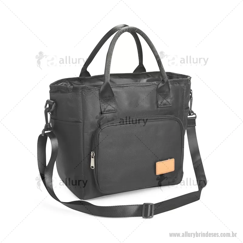 Bolsa térmica de 13 litros feita em Oxford resistente à água, com revestimento interno em PEVA e fechamento em zíper. Possui bolso frontal com plaquinha em couro sintético, dois bolsos laterais, alças de mão fixas e alça transversal regulável com mosquetões. Funcional e ideal para uso diário. - - ALLESBT104