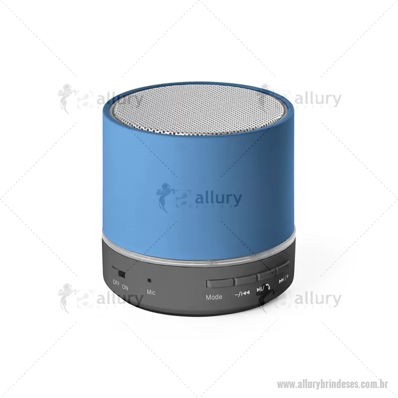 Mini Caixa de som portátil com microfone, em ABS 100% reciclado com transmissão sem fios BT 5.3. Tem potência de 3W, bateria com 400 mAh e autonomia aproximada de 4h30. Permite ainda as funções de atender chamadas, leitor de cartões microSD, entrada AUX e reprodução automática via porta USB-A. Incluso cabo de carregamento USB-C. Fornecido em caixa presente de papel kraft reciclado que pode ser reutilizada como suporte de celular. A grelha é fornecida solta para pedidos não personalizados. ø60 x 58 mm | Caixa: 65 x 63 x 75 mm Peso do Produto (g.): 109 - - ALLESTEC527