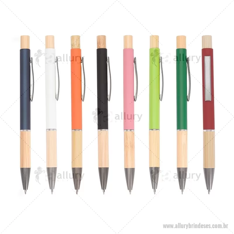 Caneta esferográfica azul 1,0 mm com corpo metálico, detalhes em bambu e acionamento por clique. Leve e confortável, proporciona escrita precisa no dia a dia. - - ALLESCMT296