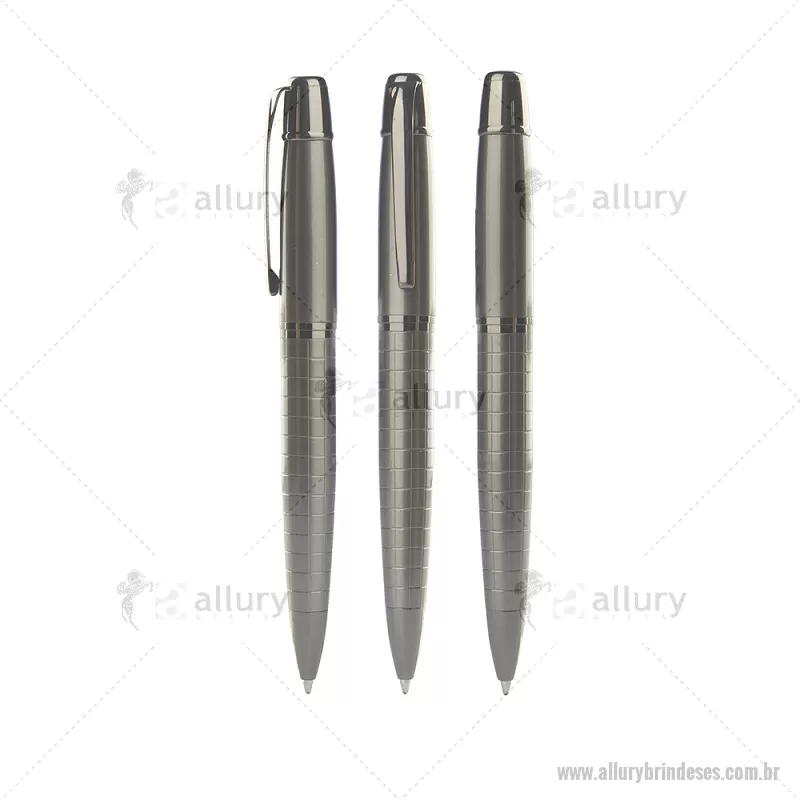 Caneta metálica esferográfica twist com escrita em azul. Dimensão Produto: 14,0xø1,3cm (AxøD) Peso do Produto: 0,033kg - - ALLESCMT170