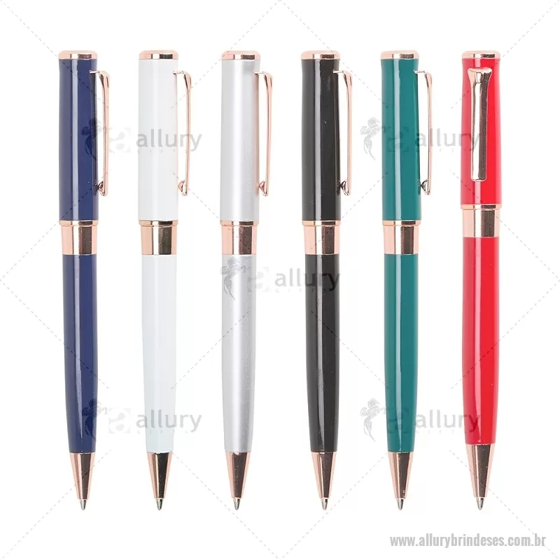 Caneta esferográfica com tinta azul 1,0 mm, acionamento por rotação e corpo totalmente metálico. Seu design oferece escrita suave, confortável e precisa, ideal para uso diário ou profissional. - - ALLESCMT300