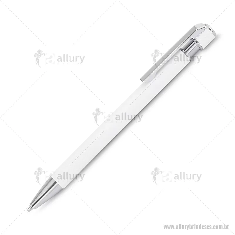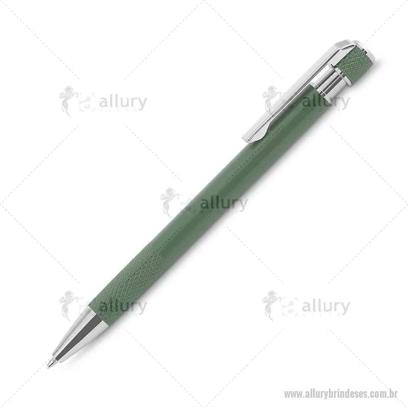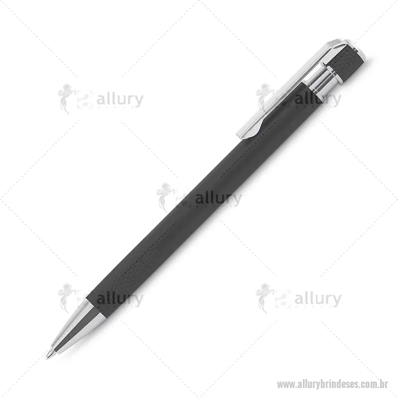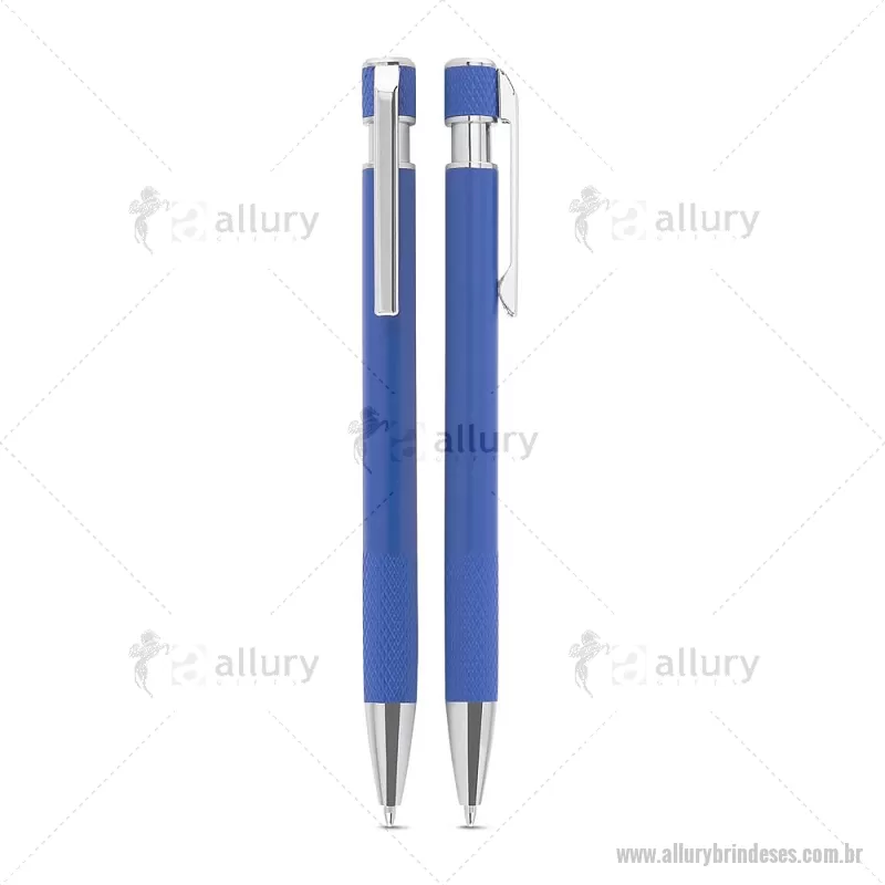 Caneta esferográfica com corpo em alumínio reciclado, acionador e clipe cromado, escrita em tinta azul. Refil substituível tipo Parker. Peso do Produto: 0,016kg Dimensão do Produto: 13,6xø0,9cm - - ALLESCMT306