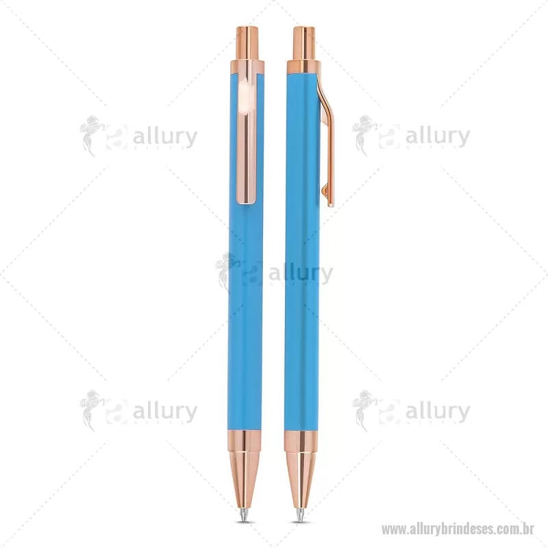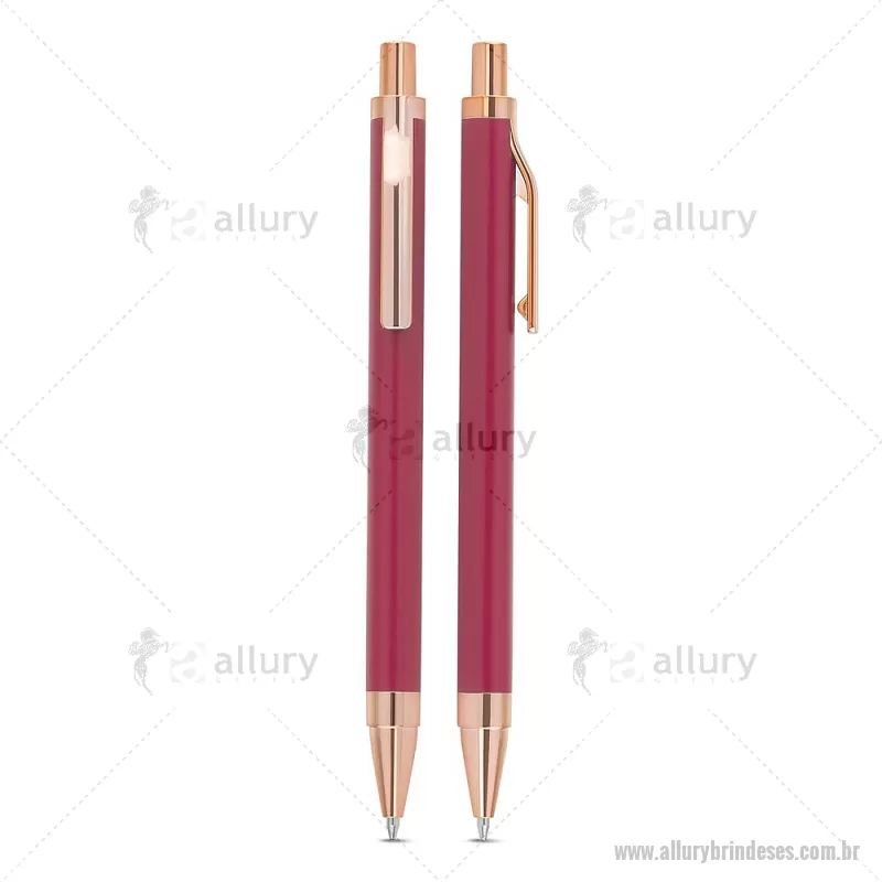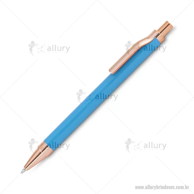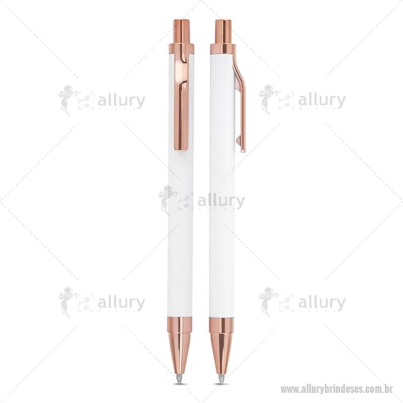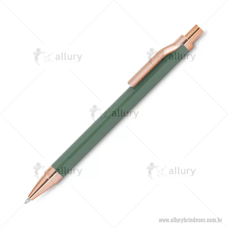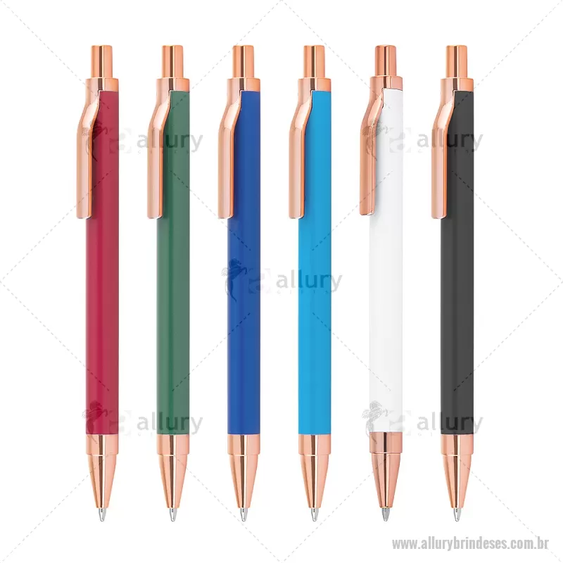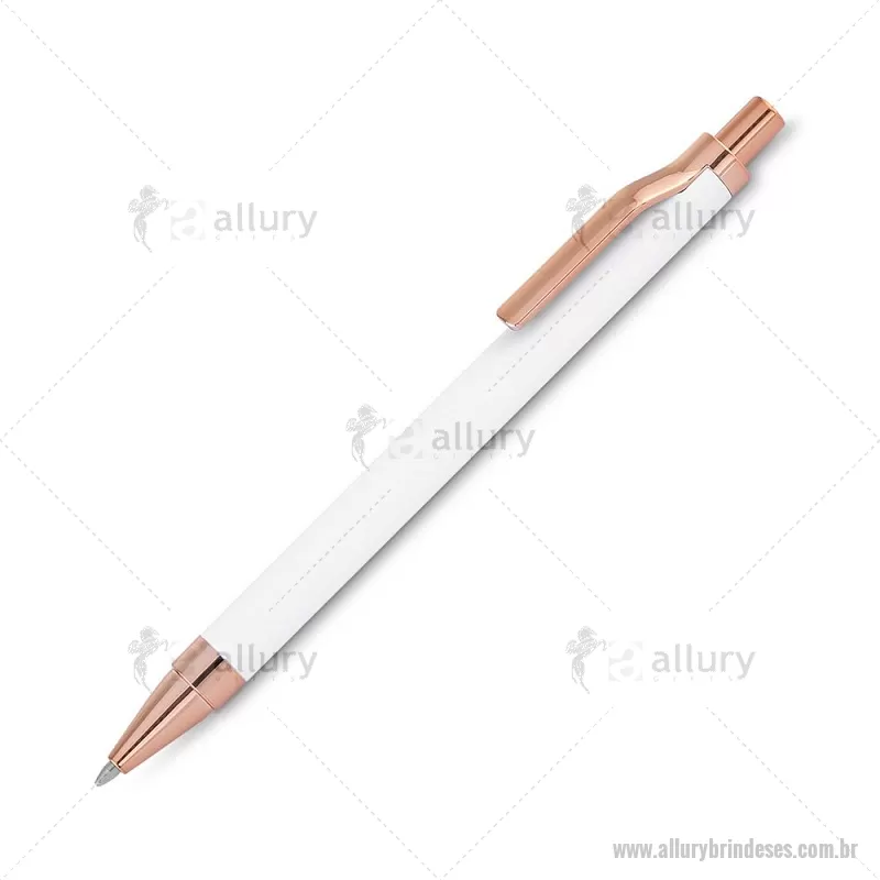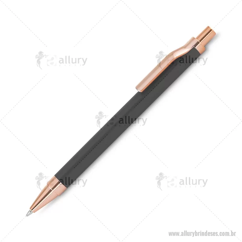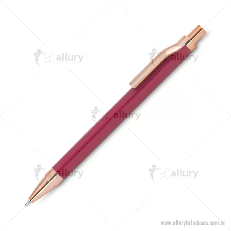 Caneta esferográfica com corpo em alumínio reciclado, acionador e clipe em acabamento rosé/bronze. Peso do Produto: 0,014kg Dimensão do Produto: 13,8xø1cm - - ALLESCMT307