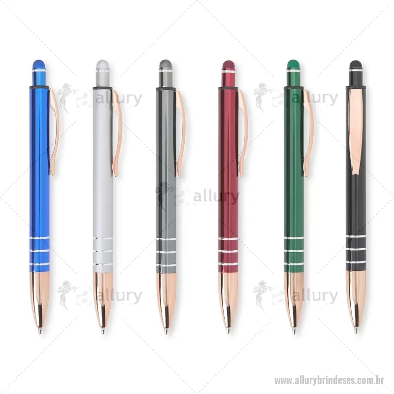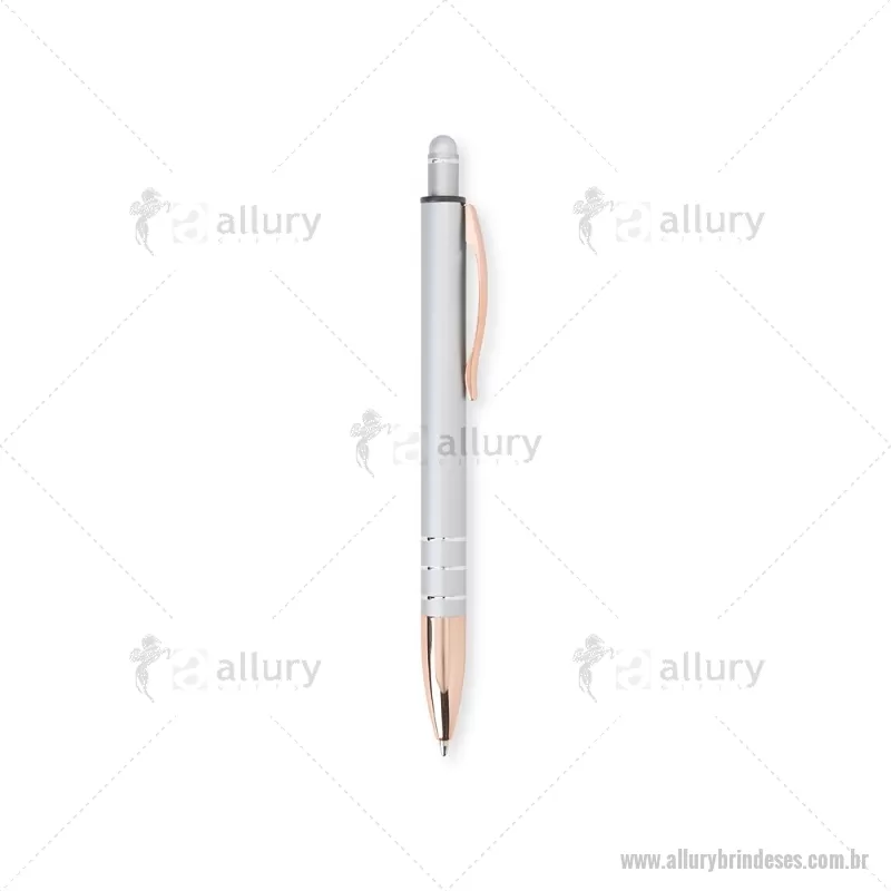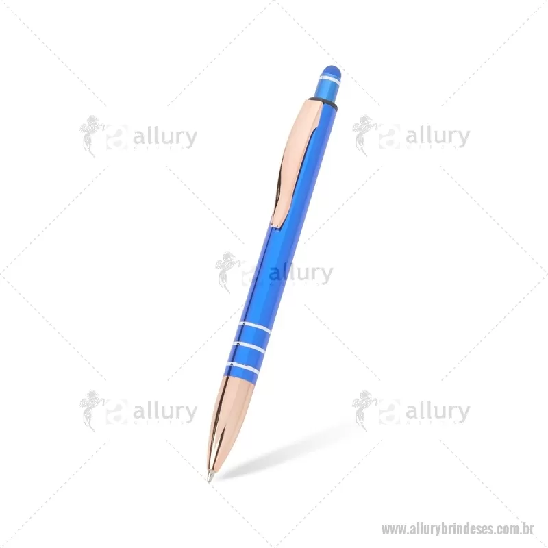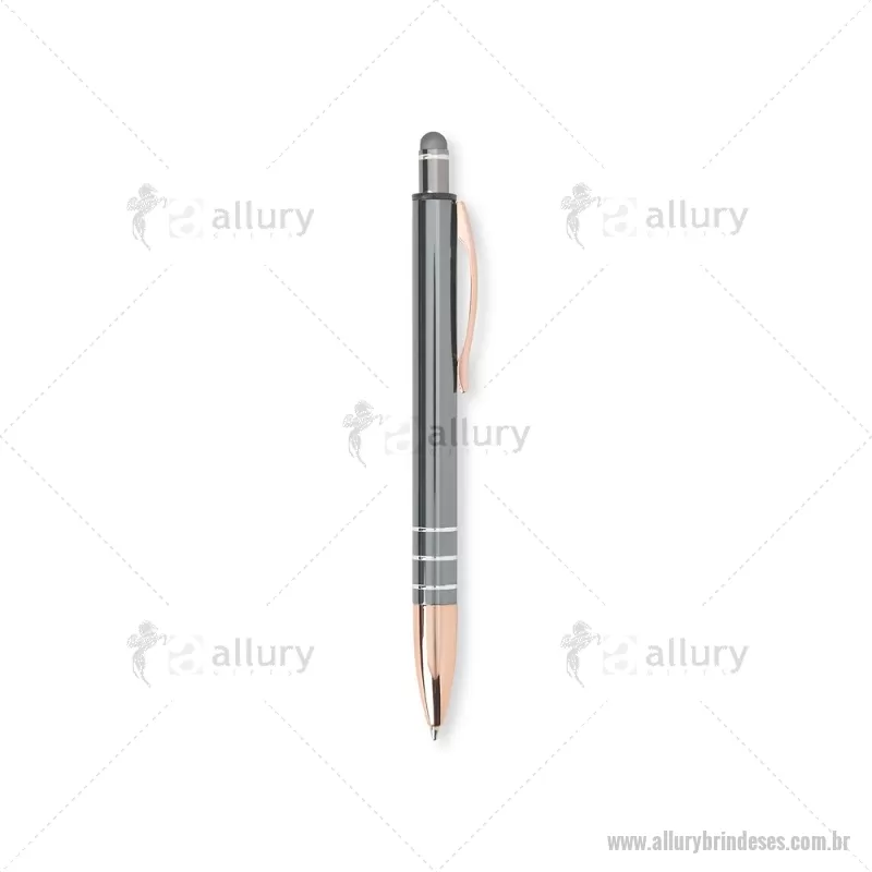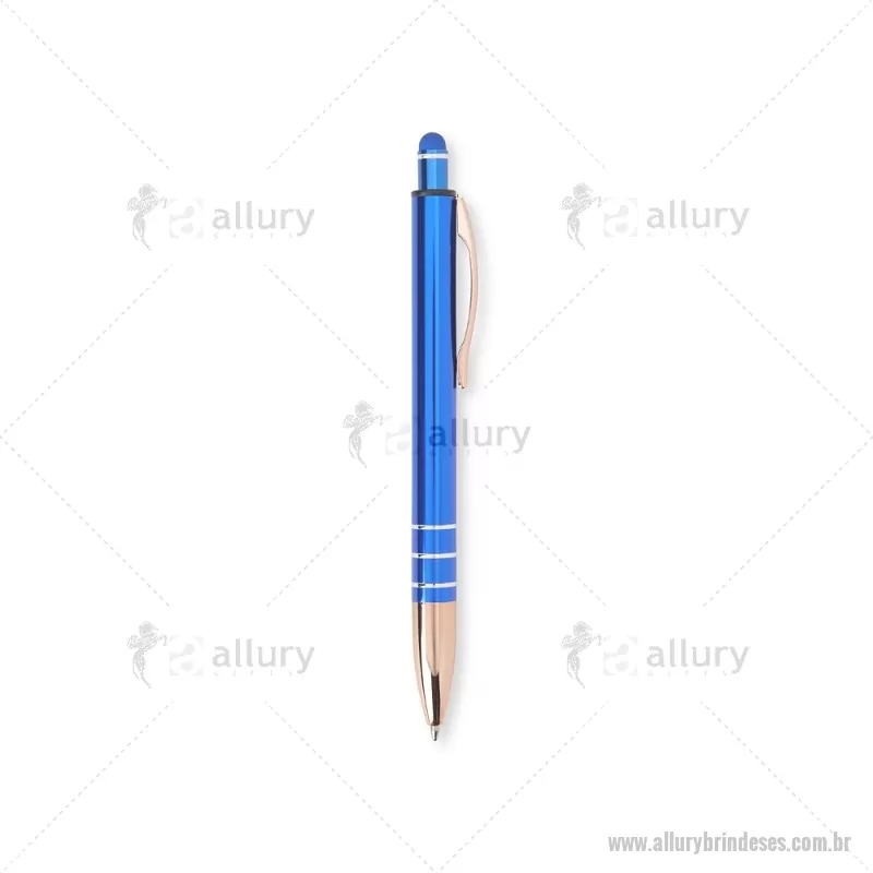 Caneta Metal Touch Caneta metálica com acionador touch, clipe metálico e ponteira plástica. Carga esferográfica azul 1.0mm e acionamento por clique. Largura : 1,6 cm x Comprimento : 14,4 cm Peso aproximado (g): 17 - - ALLESCMT291