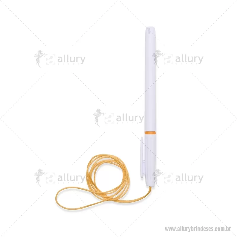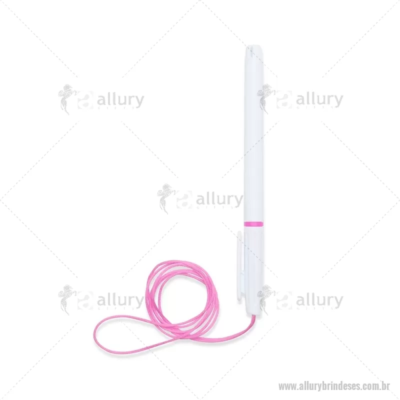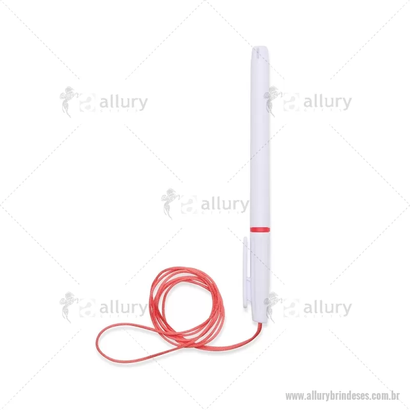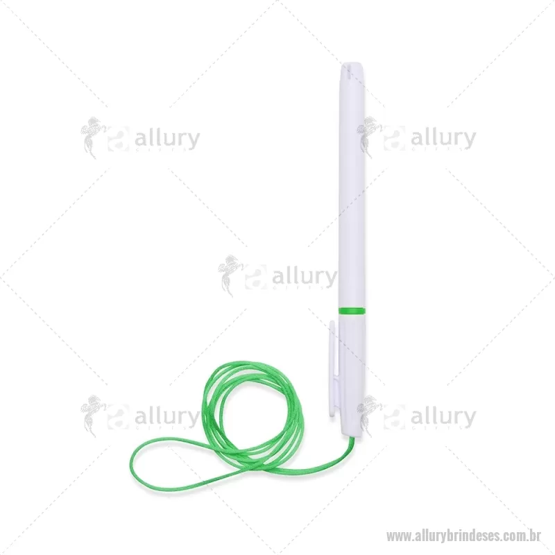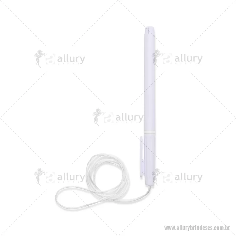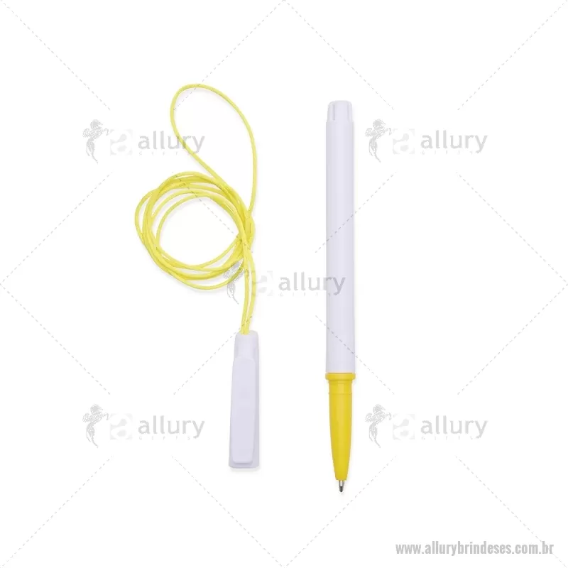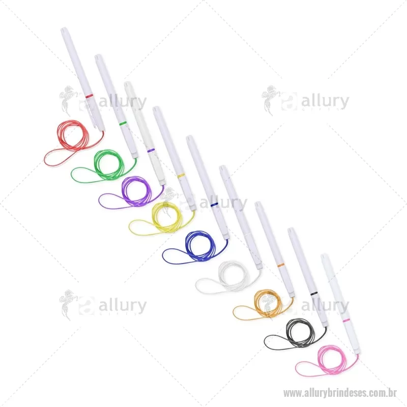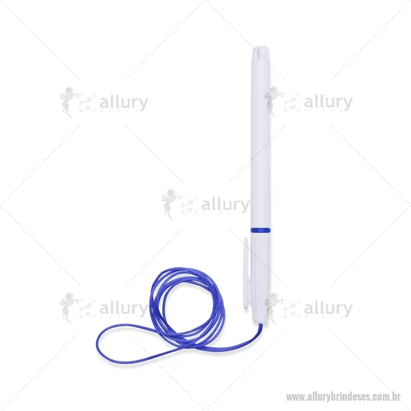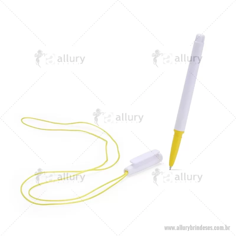 Caneta plástica com carga esferográfica azul 1,0 mm, acompanhada de cordão em nylon de 42 cm fixado na tampa. Leve e prática para uso diário. - - ALLESCPL208