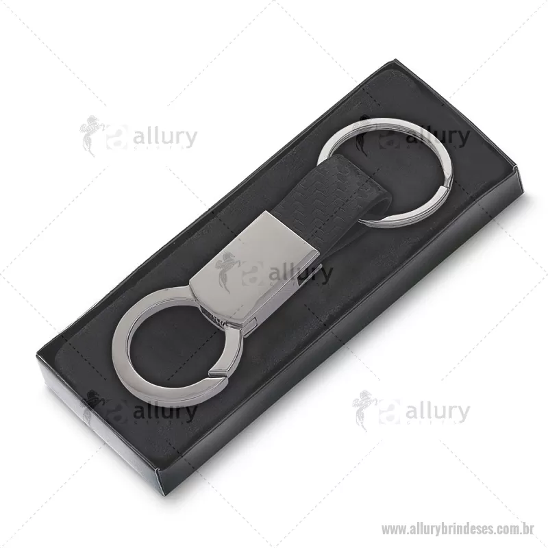 Chaveiro produzido em liga de zinco, ferro e alumínio. Chaveiro resistente, produzido com uma combinação de liga de zinco, ferro e alumínio, oferecendo durabilidade e um acabamento de qualidade. Seu design elegante é ideal para manter suas chaves organizadas. Compacto e funcional, este chaveiro é uma excelente escolha para o uso diário ou como um presente útil e sofisticado. O produto acompanha um estojo, agregando ainda mais valor e praticidade. Dimensão do Produto: 9,5x3cm (AxL) Peso do Chaveiro: 22g Peso do berço aveludado: 10g - - ALLESCHV209