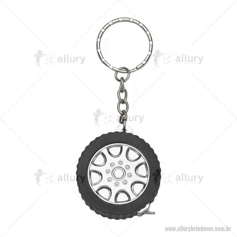 Chaveiro Plástico Trena 1 Metro Descrição: Chaveiro plástico em formato de pneu de carro e argola metálica. Possui uma trena com fita de alcance máximo de 1 metro, além de exibir suas medidas em pés e polegadas. Largura : 4,1 cm x Espessura : 1,6 cm x Comprimento : c/ argola: 10cm Tamanho total aproximado (CxL): 10,1 cm x 4,1 cm Peso aproximado (g): 24 - - ALLESFTR020