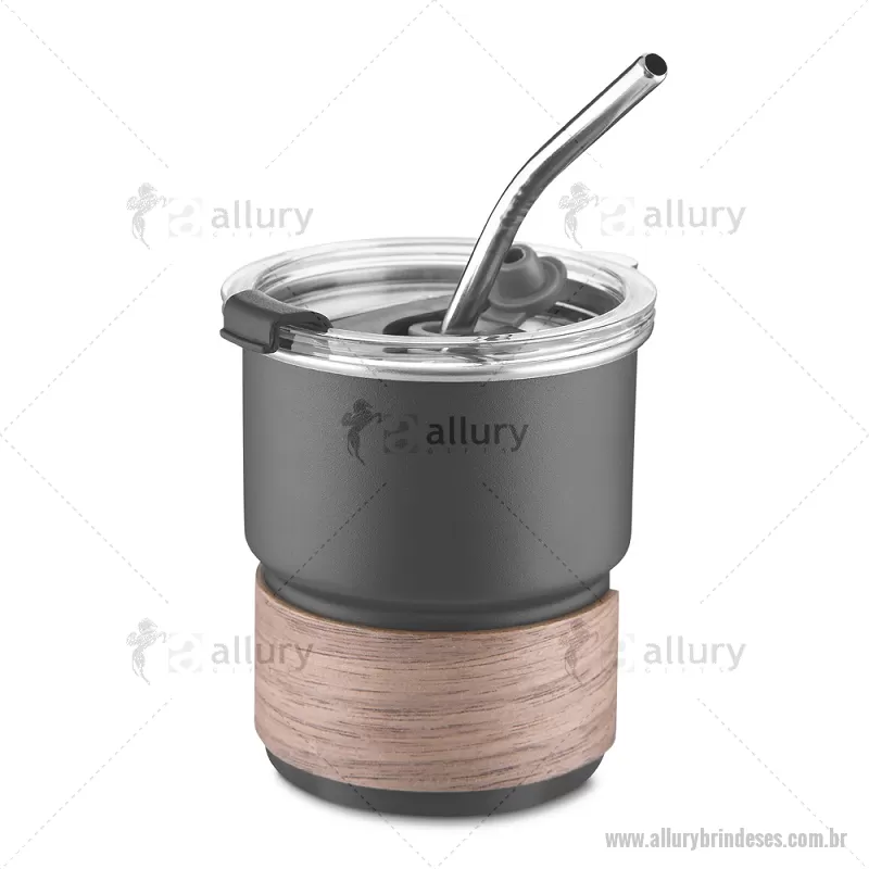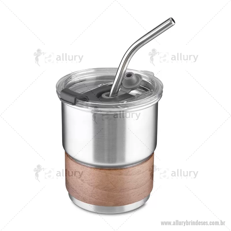 Copo em inox com Canudo Copo de parede simples em aço inox 304 com capacidade de 250ml, com canudo em inox. Tampa em plástico poliestireno (PS) que também possui um bico como forma alternativa de uso. Com pegador em fibra de noz. Possui acabamento externo com pintura fosca. Peso do Produto: 0,100kg Dimensão do Produto: 9xø7,5cm - - ALLESCPO150