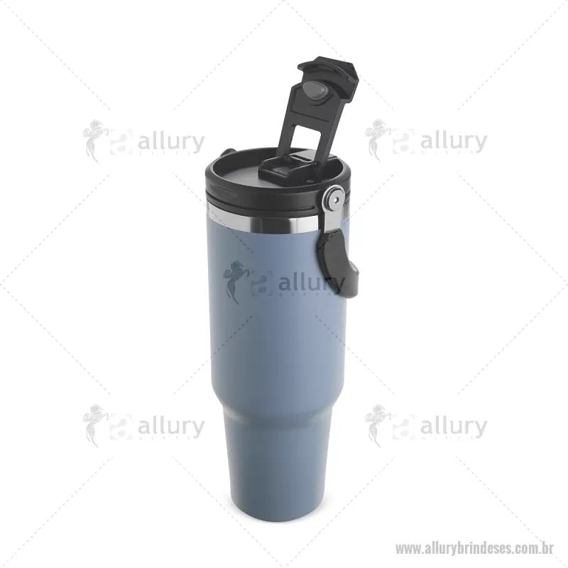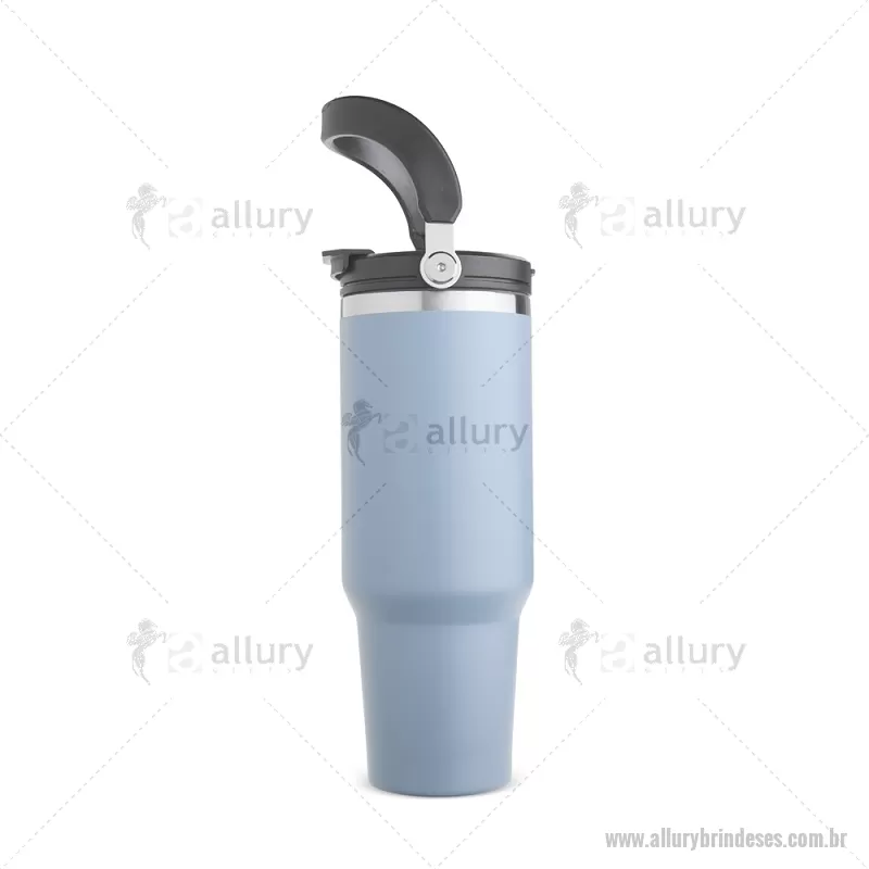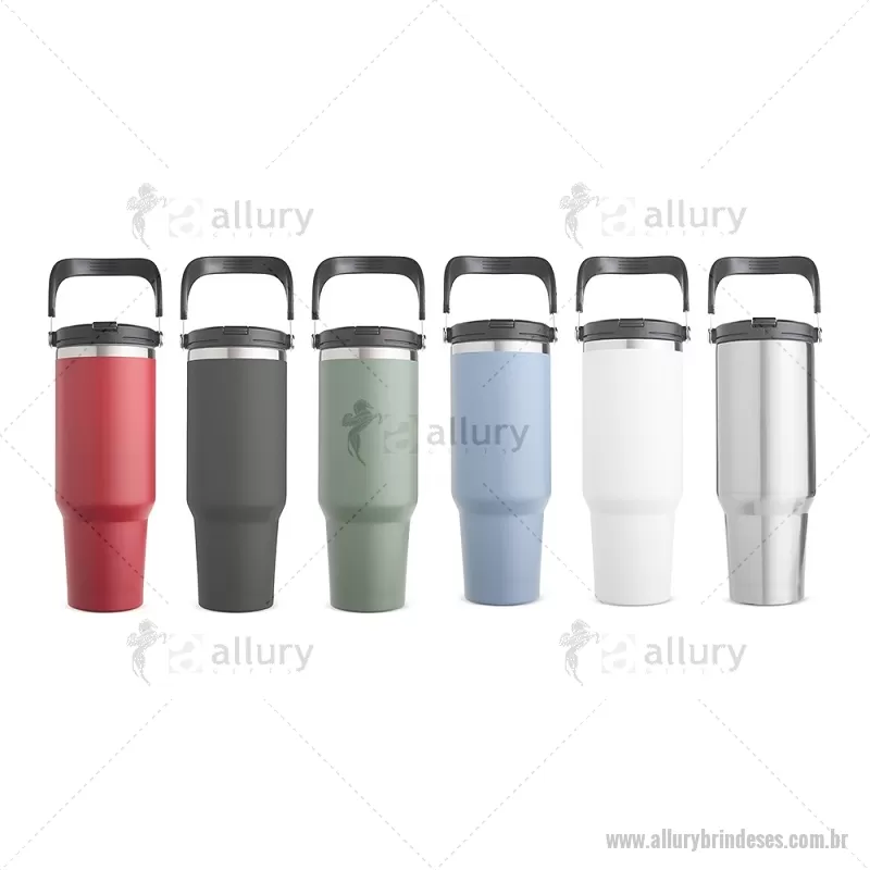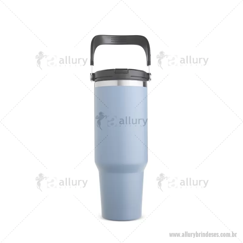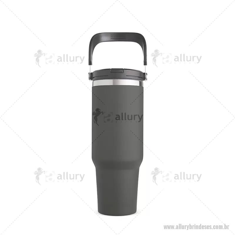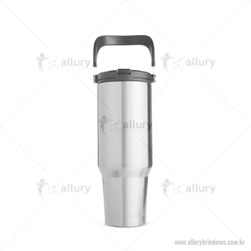 Copo térmico de 1,25 L em inox com parede dupla, ideal para manter a temperatura das bebidas por mais tempo. Possui tampa plástica rosqueável com vedação a vácuo, canudo plástico removível e alça em inox com revestimento em plástico para transporte seguro e prático. - - ALLESCPO147