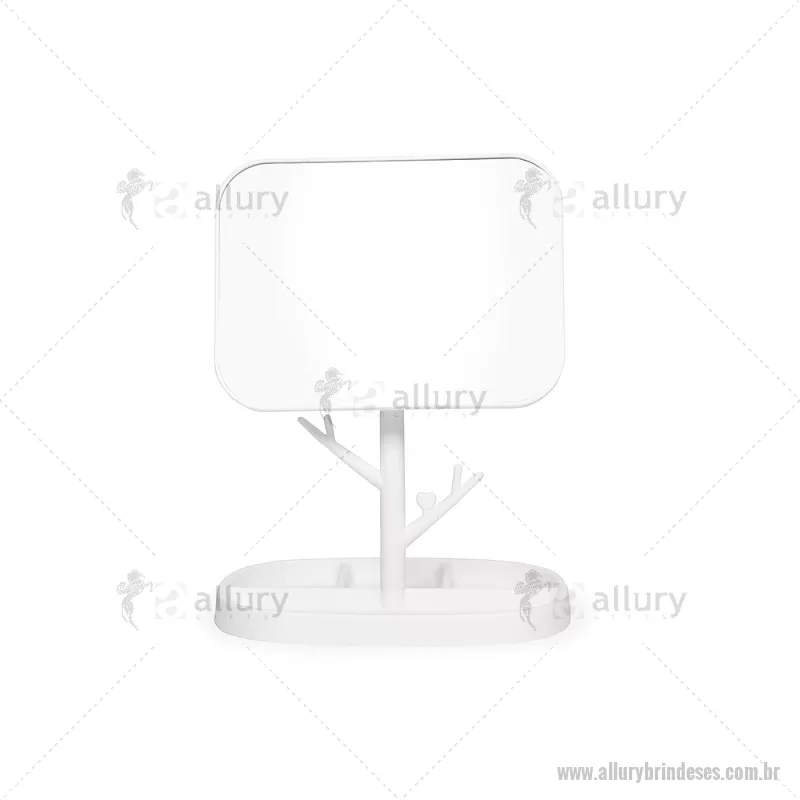 Espelho de Mesa Plástico retangular e estrutura fácil de montar feita em plástico. Conta com pedestal giratório que permite ajustar o espelho em diferentes ângulos e posições. Além disso, possui ganchos laterais e quatro divisórias na base para organizar objetos. Altura : 30 cm x Largura : 15,5 cm x Comprimento : 20,5 cm Peso aproximado (g): 277 - - ALLESFEM120