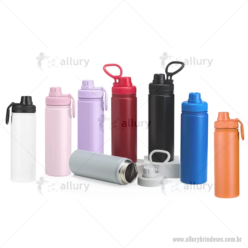 Garrafa Inox 750ml Conta com pintura eletrostática, que oferece uma cor duradoura e acabamento de maior qualidade e resistência. Possui tampa rosqueável em plástico com proteção para o bocal e alça para transporte. Altura : 24 cm x Circunferência : 23 cm x Comprimento : 7,5 cm Peso aproximado (g): 175 - - ALLESGAR154