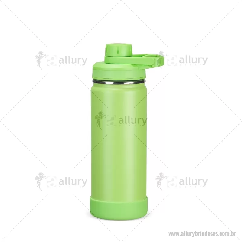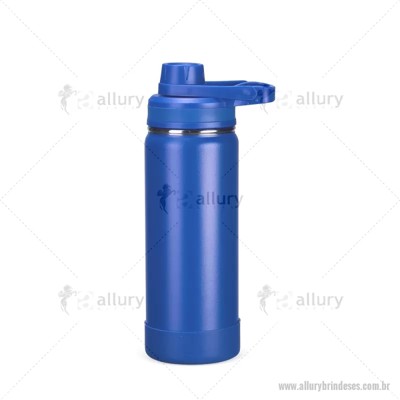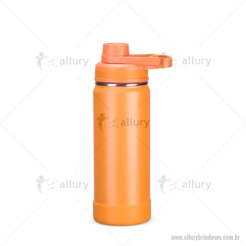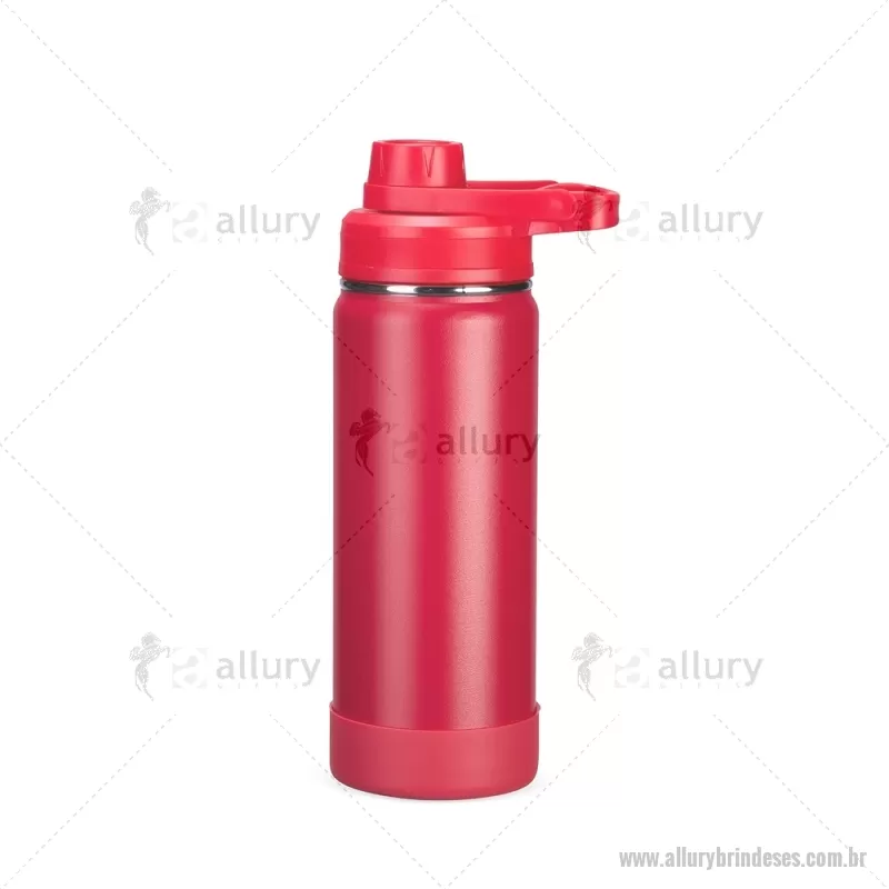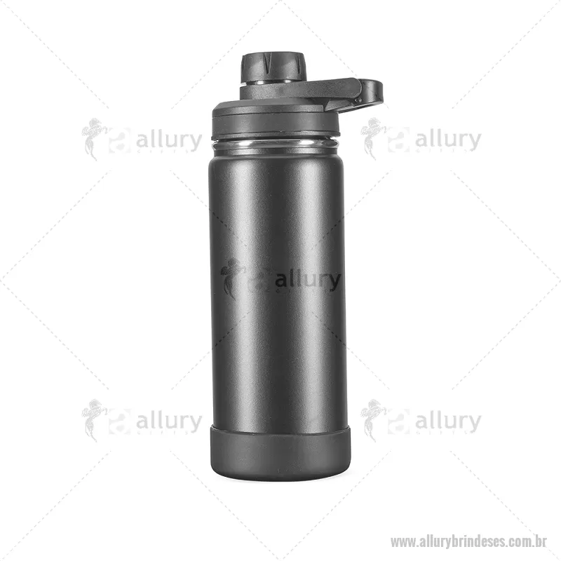 Garrafa Térmica 550ml inox com pintura eletrostática. Mantém a temperatura de líquidos por mais tempo graças à estrutura de parede dupla e ao isolamento a vácuo. Possui tampa plástica rosqueável com protetor de bocal e alça fixa. Acompanha protetor removível em silicone para a base. Altura : 22,5 cm x Largura : 7,4 cm x Circunferência : 23,3 cm Tamanho total aproximado (CxL): Diâmetro: 5,5 cm Peso aproximado (g): 290 - - ALLESGAT172