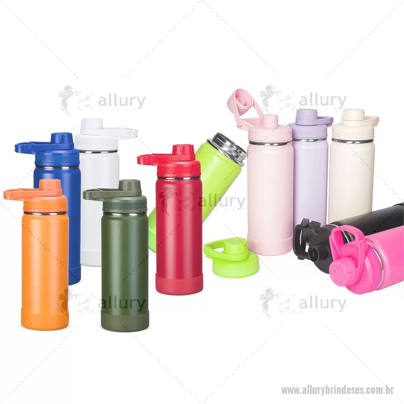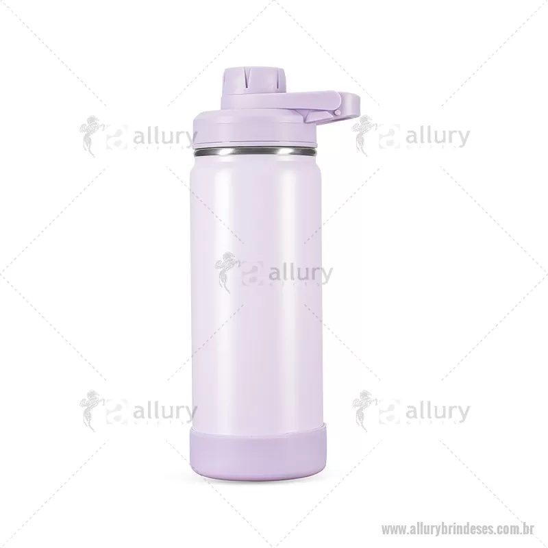 Garrafa Térmica 550ml inox com pintura eletrostática. Mantém a temperatura de líquidos por mais tempo graças à estrutura de parede dupla e ao isolamento a vácuo. Possui tampa plástica rosqueável com protetor de bocal e alça fixa. Acompanha protetor removível em silicone para a base. Altura : 22,5 cm x Largura : 7,4 cm x Circunferência : 23,3 cm Tamanho total aproximado (CxL): Diâmetro: 5,5 cm Peso aproximado (g): 290 - - ALLESGAT172