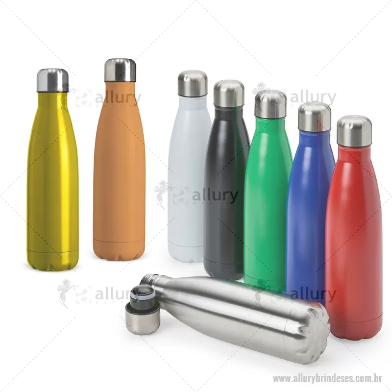 Garrafa Térmica Com Tampa Inox com capacidade de até 500ml. Conta com tampa rosqueável e estrutura em parede dupla e isolamento a vácuo, que permite conservar a temperatura de líquidos por mais tempo. Altura : 26,5 cm x Largura : 6,5 cm x Circunferência : 22,8 cm Peso aproximado (g): 272 - - ALLESGAT157