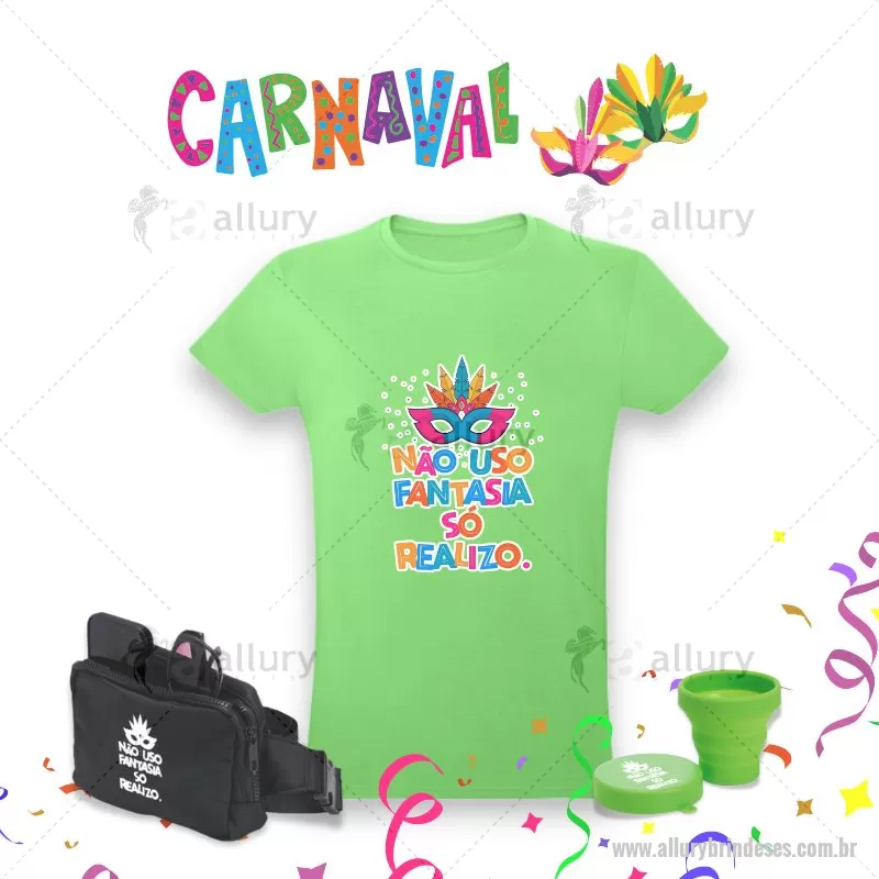 Kit Carnaval 3 Peças Contém: 1 Pochete de Nylon Impermeável, oferece proteção contra a água, garantindo que os itens essenciais fiquem protegidos. Com dois compartimentos com zíper, sendo o principal com um bolso de malha elástica, é possível organizar dinheiro, chaves, fones de ouvido, maquiagens e muito mais. As alças ajustáveis. - Gravação em Silk screen 1 cor (POC009) 1 Copo sanfonado. Copo retrátil com capacidade de 150ml, livre de BPA. Contém tampa plástica de encaixe com acesso para chaveiro. - Gravação em Silk screen 1 cor (CPO140) 1 Camiseta unissex de corte regular em malha 100% algodão (135 g/m2) com fio 30/1 misto. Com gola em ribana 1,5x1,5 com fita de reforço e com costura dupla nas mangas, barra de fundo e laterais. Tamanhos: P, M, G, GG. - Gravação em Transfer Colorido (CMS005) * Verificar cores de produtos Disponíveis. - - ALLESKIT030