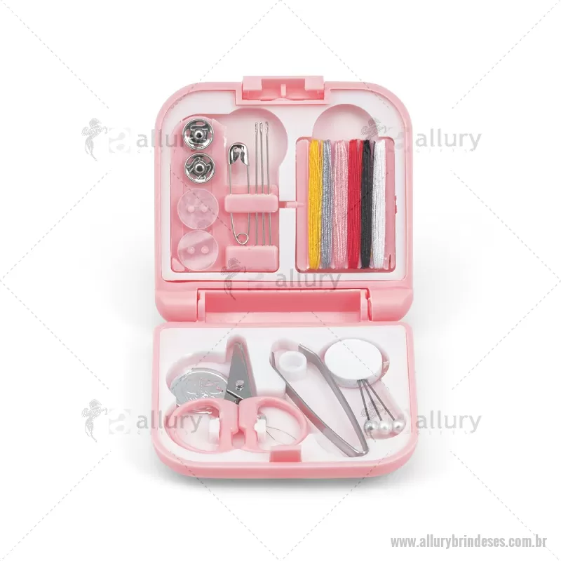 Kit de costura prático e leve para viagem Conjunto de costura prático e leve para levar em viagem. Composto por 3 alfinetes, 3 agulhas, 1 pinça, 1 tesoura, 1 enfia linha, 1 alfinete, 2 botões, 2 colchetes e 6 rolos de linhas de várias cores. Fornecido em estojo. Medidas: 70 x 21 x 65 mm Peso do Produto (g.): 46 - - ALLESFEM084