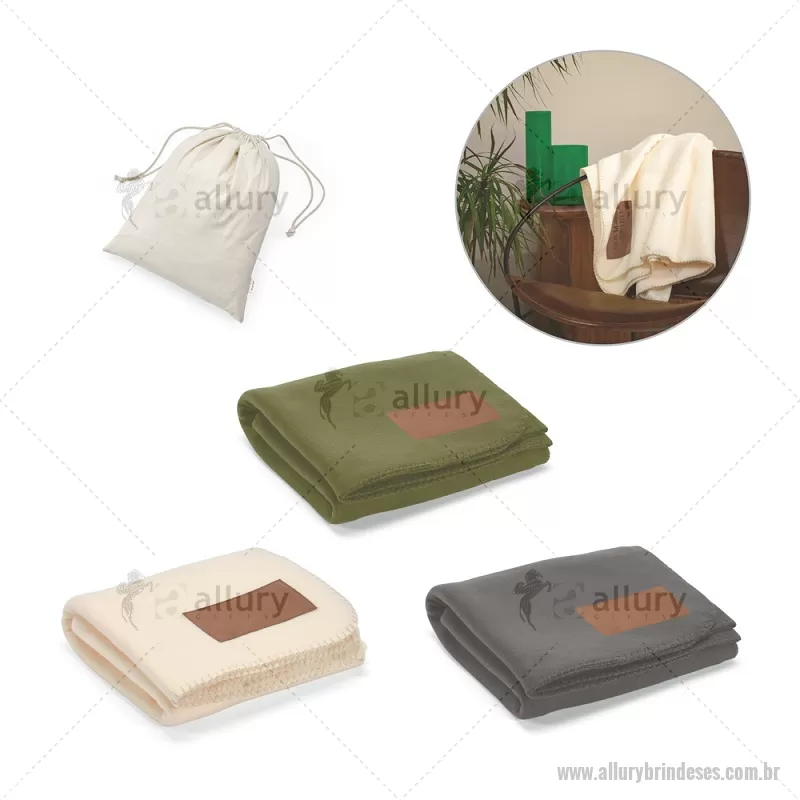 Manta em tecido polar, 100% poliéster reciclado (100% rPET), com área para personalização em microfibra. Fornecido em saco de tecidos 100% reciclado (70% algodão reciclado e 30% poliéster reciclado), com gramagem de 140 g/m². Medidas: 1600 x 1200 mm | Saco: 400 x 320 mm Peso do Produto (g.): 620 - - ALLESMAT007
