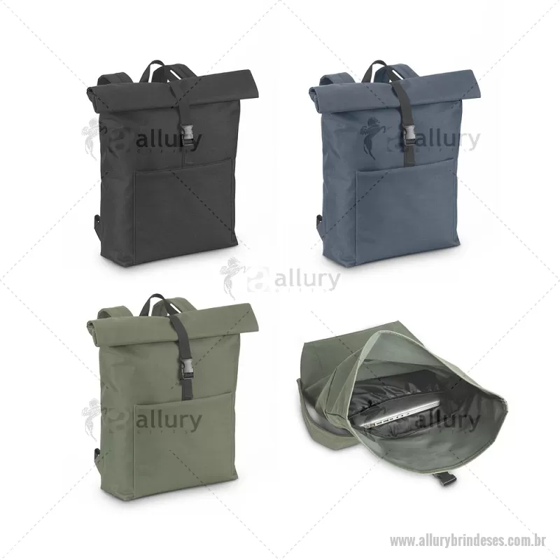 Mochila para computador portátil (17.3") em 600D (21 L) Mochila "Roll-top" para notebook em 600D e forro em 210D. Possui um compartimento principal espaçoso para notebook até 17.3", com fecho de enrolar no topo. Bolso frontal com zíper. Medidas: 320 x 440 x 130 mm Peso do Produto (g.): 410 Capacidade : até 21 L. - - ALLESMC253