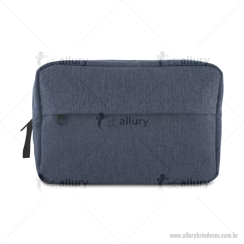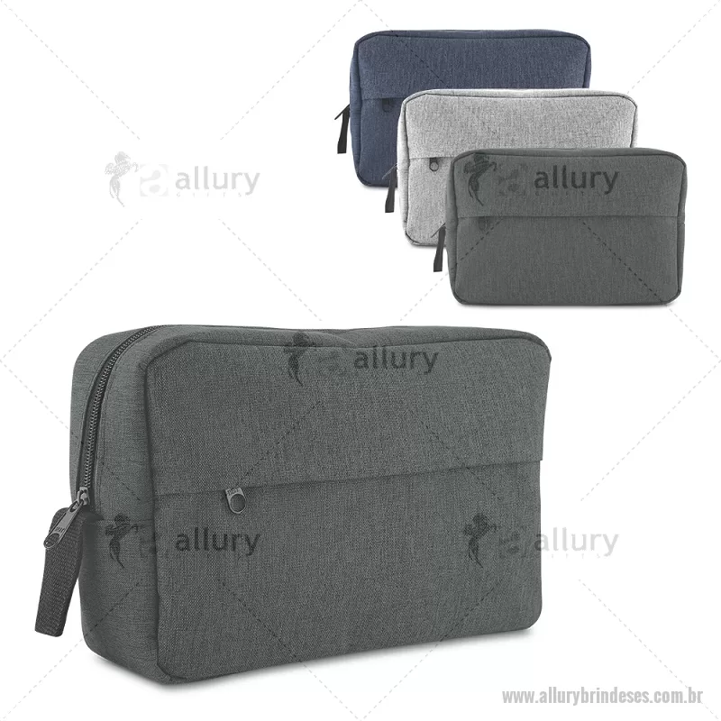Nécessaire em poliéster 300D, equipada com alça para transporte e bolso frontal com fechamento em zíper. Compacta e prática para organizar pequenos itens do dia a dia. - - ALLESNC145