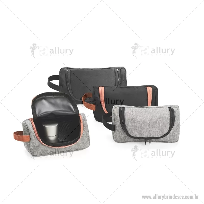 Nécessaire em nylon resistente à água, com fechamento em zíper, divisória interna em tela para melhor organização e alça lateral que facilita o transporte. Ideal para uso diário ou viagens. - - ALLESNC147