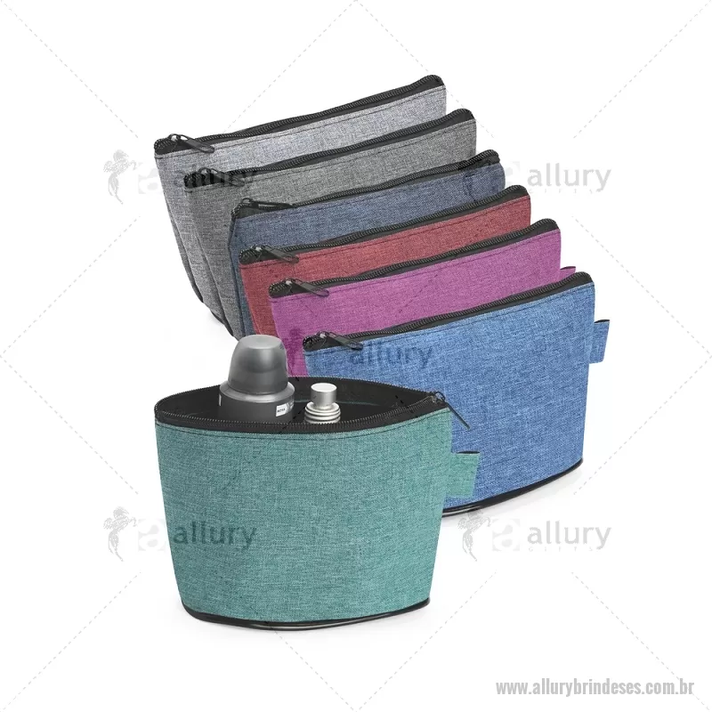 Nécessaire em poliéster com mescla de PVC, resistente à água e com fechamento em zíper. Possui pequena alça lateral, ideal para prender chaveiros ou ganchos, oferecendo praticidade no uso diário. - - ALLESNC148