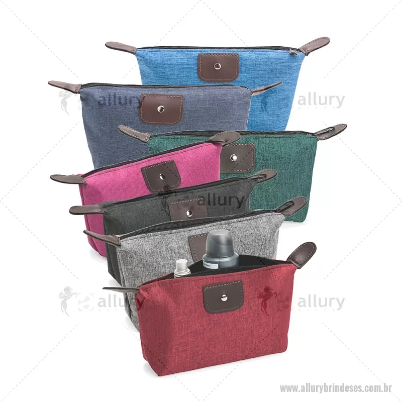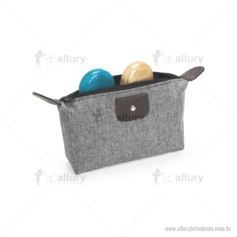 Nécessaire compacto em poliéster com mescla de PVC resistente à água. Possui fechamento em zíper e acabamento com detalhes em bidim e metal, oferecendo praticidade e um visual moderno para organizar pequenos itens do dia a dia. - - ALLESNC150