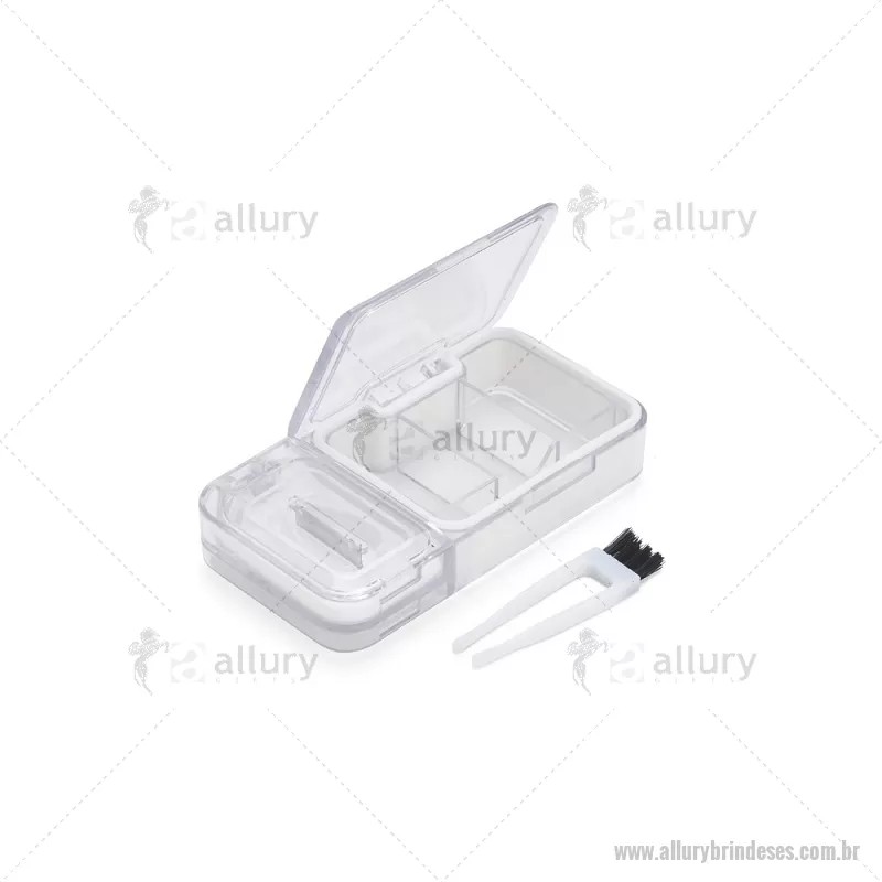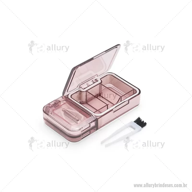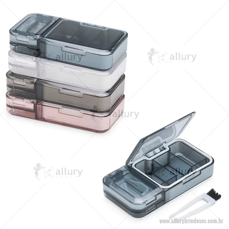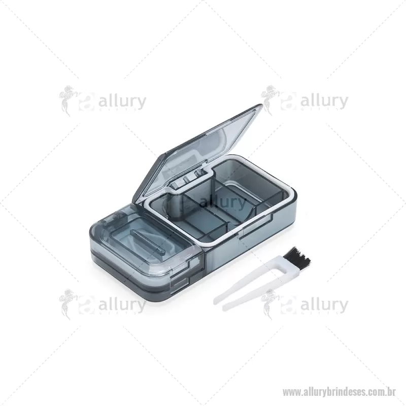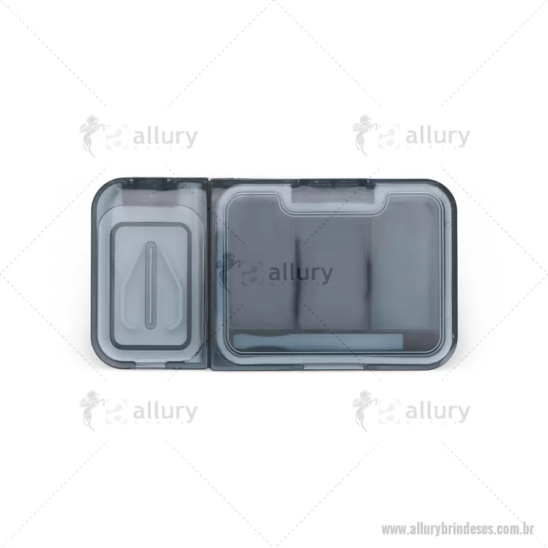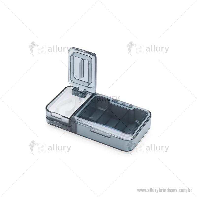 Porta Comprimidos Plástico Descrição: Porta-comprimidos multifuncional em plástico. Possui três divisórias com capacidade de até 10ml cada, além de dois compartimentos especiais: um cortador de comprimidos na parte superior e outro para trituração, localizado na parte inferior. Largura : 6 cm x Espessura : 2,5 cm x Comprimento : 12 cm Peso aproximado (g): 107 - - ALLESPCP017