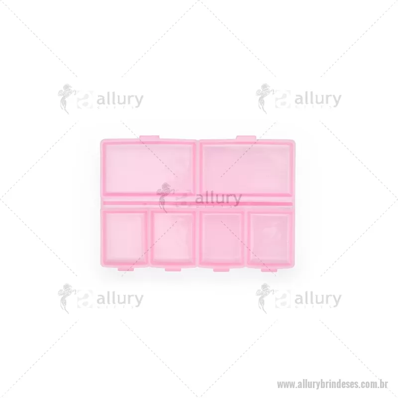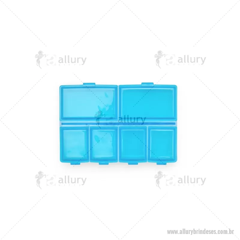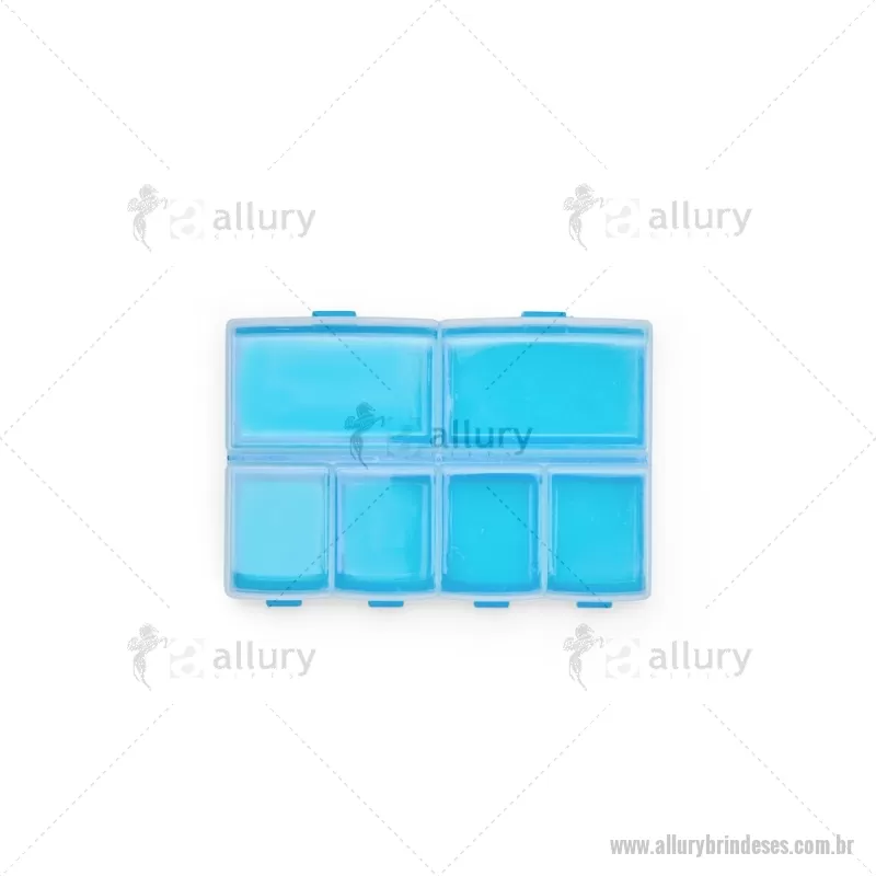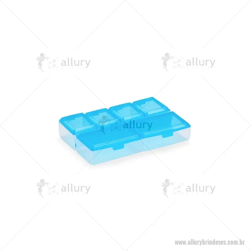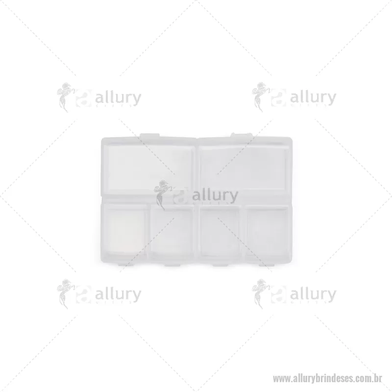 Porta-Comprimidos Plástico Descrição: Porta-comprimidos em plástico com seis compartimentos, dois maiores e outros quatro menores, oferecendo mais possibilidades de organização. Largura : 6,4 cm x Espessura : 1,9 cm x Comprimento : 9,5 cm Peso aproximado (g): 23 - - ALLESPCP015
