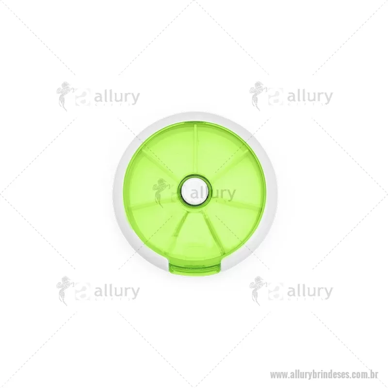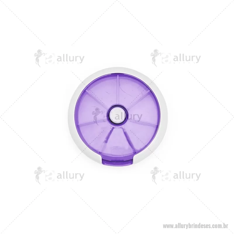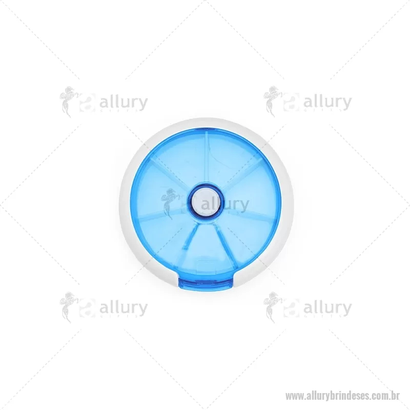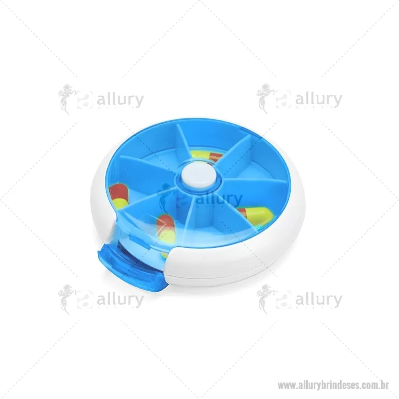 Porta-Comprimidos Plástico Descrição: Porta-comprimidos em plástico. Com design compacto, possui sete divisórias e um botão de acionamento que movimenta o mecanismo de giro de compartimentos a cada clique.permitindo o acesso ao conteúdo por meio de uma abertura lateral. Largura : 9 cm x Espessura : 2,6 cm x Comprimento : 9 cm Peso aproximado (g): 50 - - ALLESPCP018