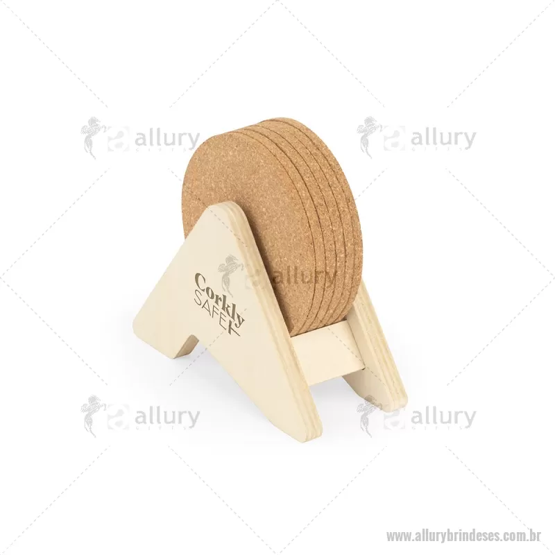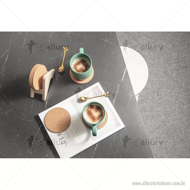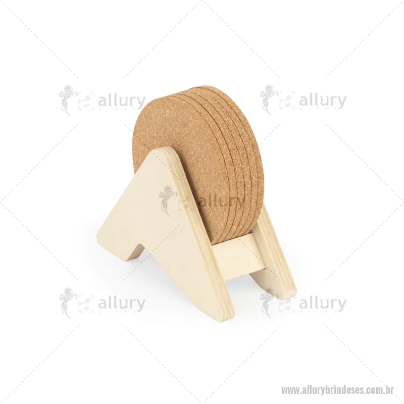 Porta copos em madeira com 6 bases para copos em cortiça. Desfrute da sua bebida evitando marcas na mesa. Certificação EU Food Grade. A cor e o resultado da impressão nos materiais naturais pode variar entre produtos. medidas: 140 x 92 x 78 mm Peso do Produto (g.): 80 - - ALLESPCO010