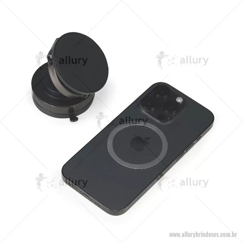Suporte Magnético Para Celular Suporte magnético em plástico ABS com articulação em diferentes ângulos e rotação de 360 graus no próprio eixo. Possui superfície magnética para fixação de aparelhos na vertical ou horizontal, compatível com dispositivos magnéticos ou com o anel adaptador incluso. Conta com mecanismo giratório para pressão da ventosa em superfícies lisas. Acompanha anel magnético adesivo, placa plástica com adesivo, kit de lenços e chave Allen. Altura : 3,1 cm x Largura : 6 cm x Circunferência : 18,8 cm /br> Peso aproximado (g): 76 - - ALLESTEC546
