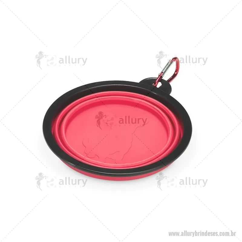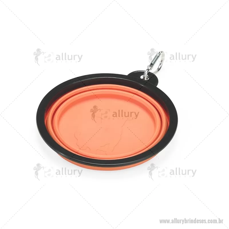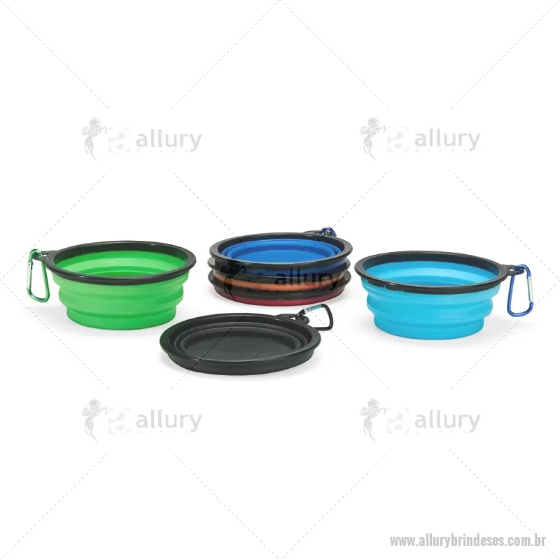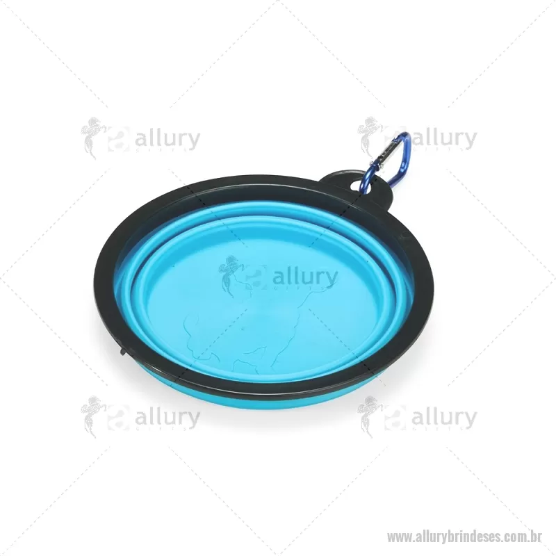 Tigela retrátil para pets feita em silicone, com borda plástica e encaixe para mosquetão. Tem capacidade de 350 ml e acompanha mosquetão metálico, facilitando o transporte durante passeios e viagens. Prática, leve e ideal para água ou ração. - - ALLESPET013