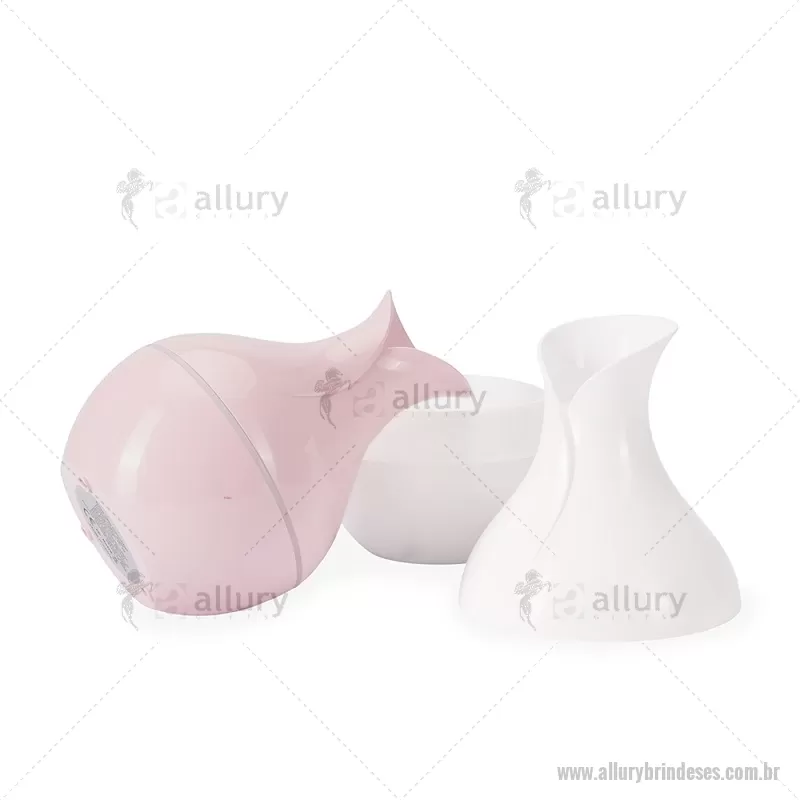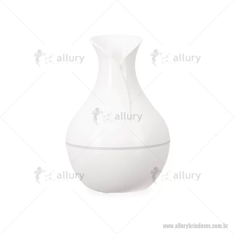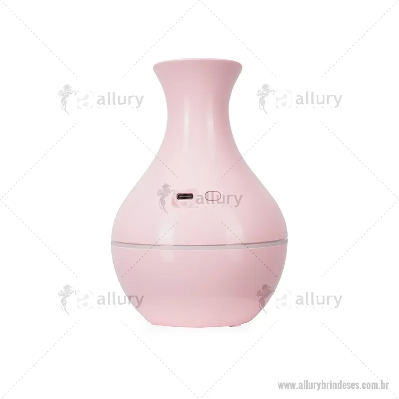 Umidificador de ar em plástico com design tipo vaso, iluminação LED e reservatório de 200 ml. Oferece modos de névoa contínua ou intermitente e funciona conectado a uma fonte de energia via entrada USB-C. Acompanha filtro de algodão e cabo USB-C. - - ALLESTEC537